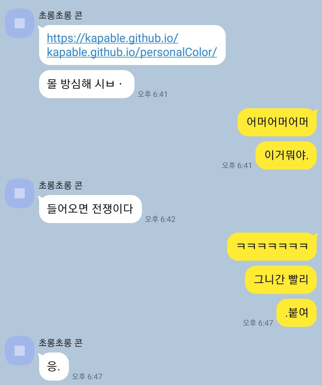 ㅎㅎㅎㅎ 어제 이렇게 장난치며 주고 받은 내용인데
