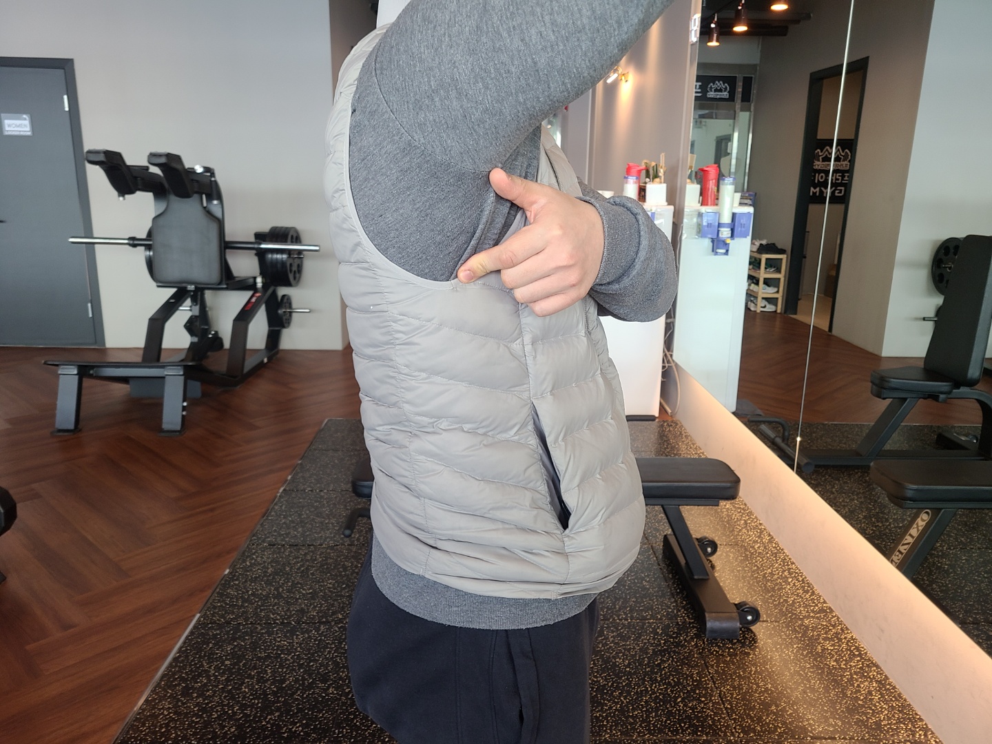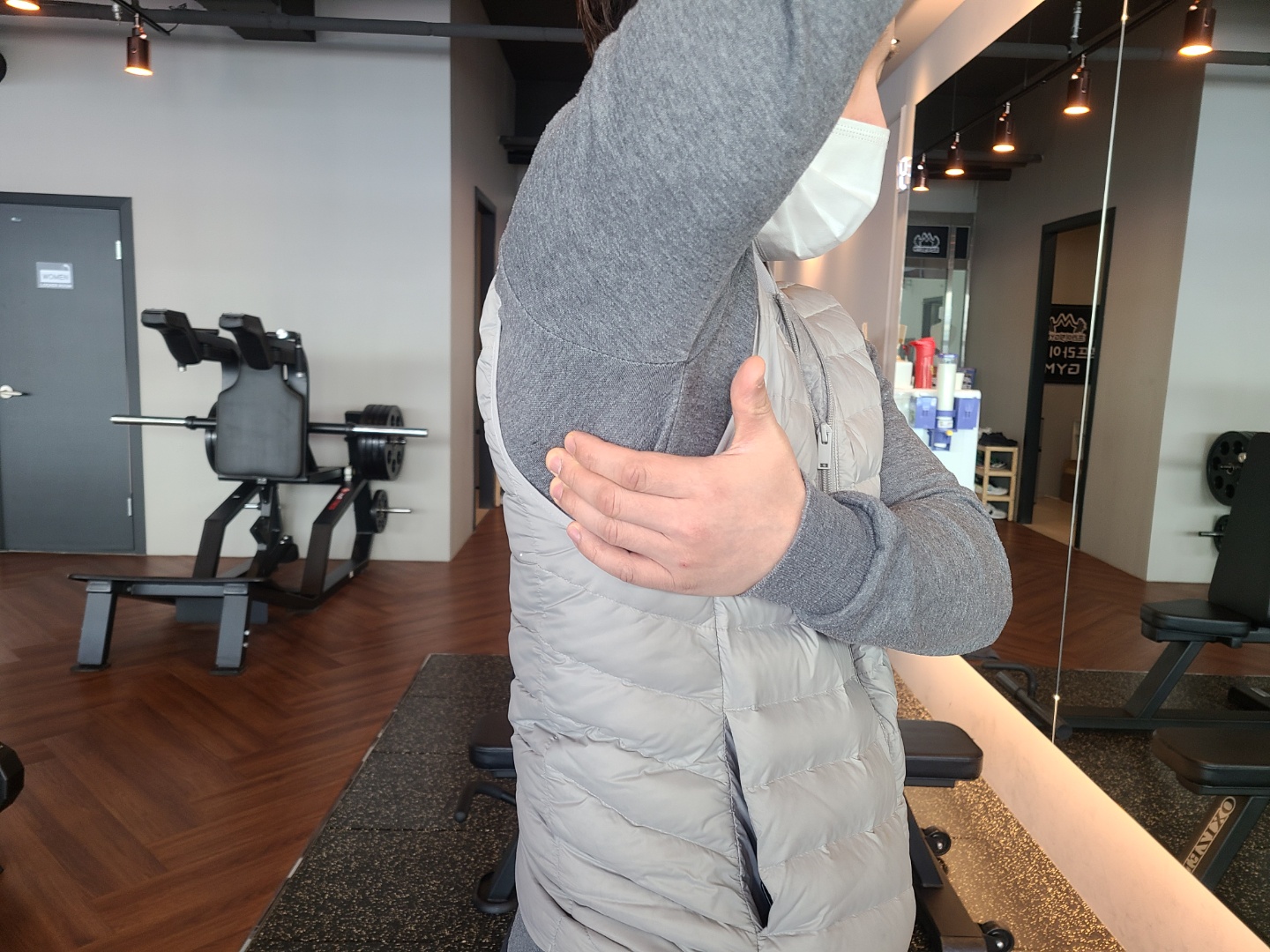 어깨 대신 일할수있는 친구인 어깨 주변부에있는 "승모근"이라는 친구가 결국 일을 하게되고