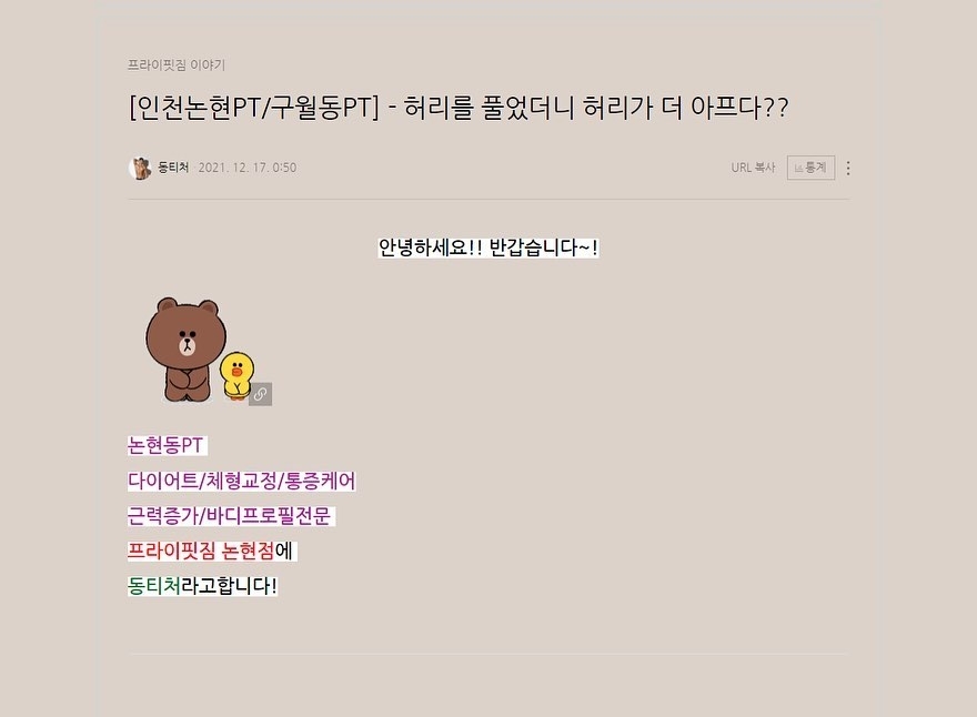 안녕하세요!! 반갑습니다~! 인천논현동PT 다이어트/체형교정/통증케어 근육량증가/바디프로필전문 프라이...