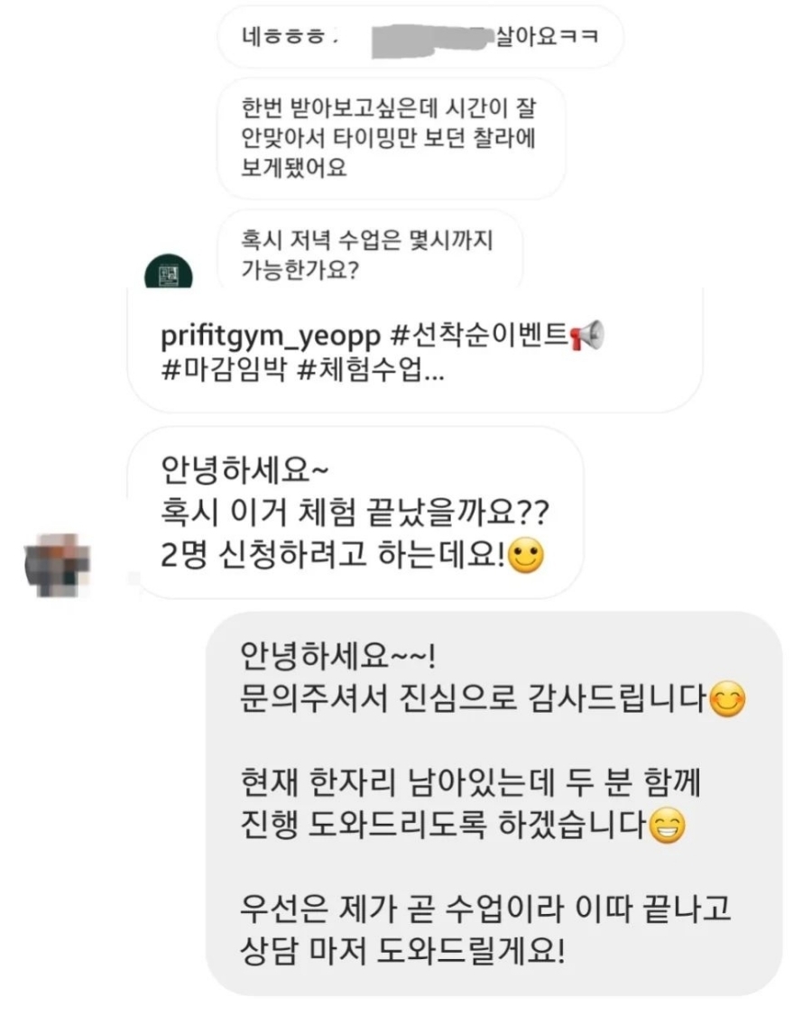 회원님들 한 분 한 분께 집중하는