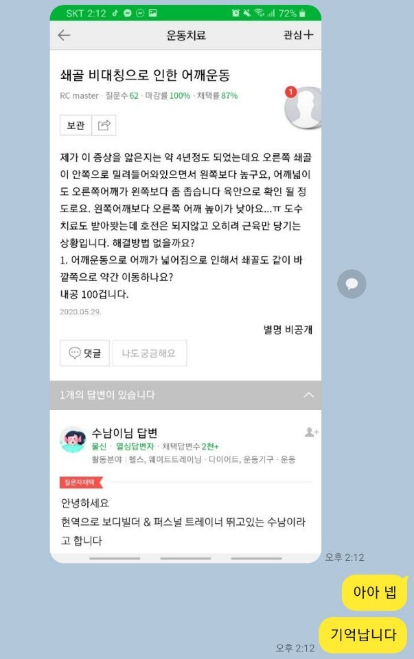 통증이 해결 안 되어지시는 경우 이메일로 컨설팅
