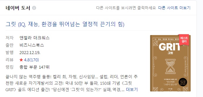이번 그릿이라는 책을 읽고서는 전과 다르게 조금은 더 끈기 있게 하고자 하는 능력이 생긴 것 같습니다