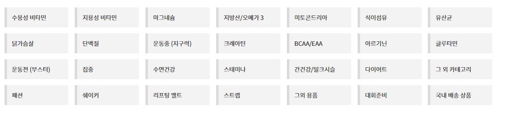 단순히 보충제 뿐만이 아닌 부스터, 아르기닌, BCAA, 스트랩, 벨트 등등.. 각종 운동 용품 및