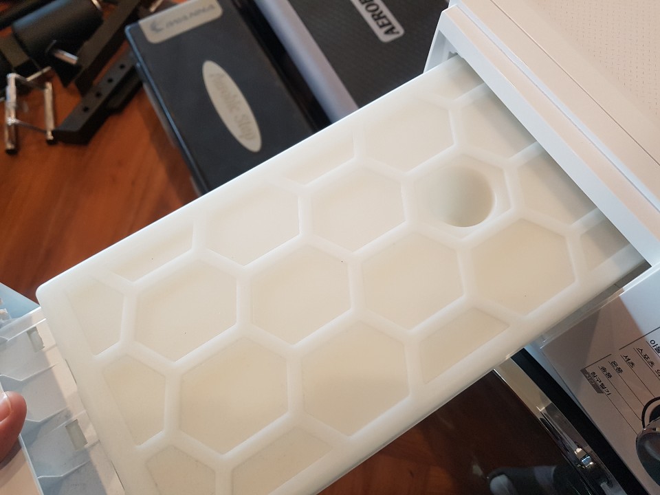 왼쪽에 보시면 물받이 통이 있는데 한번 사용할 때마다