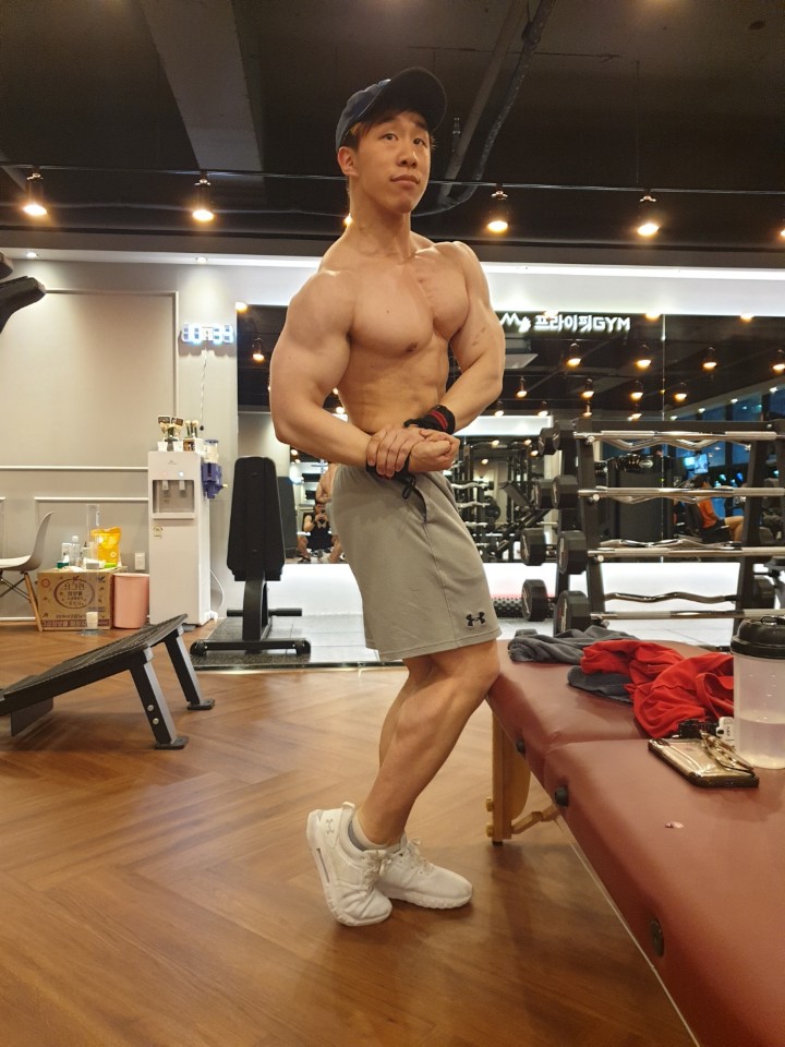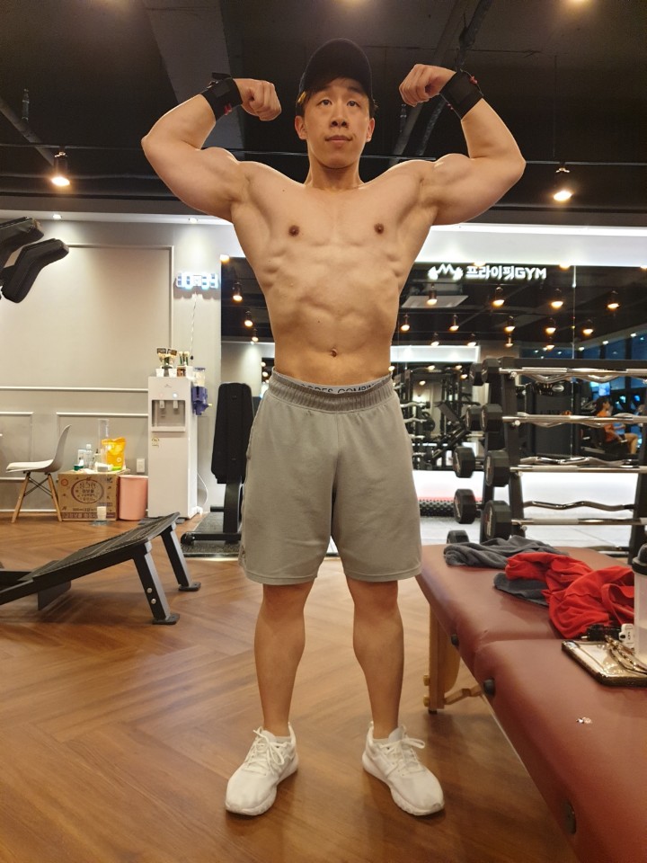 운동 직후라 그런 건지 수분이 꽉 채워있어서 사이즈도 다이어트 상태도 제법 봐줄 만했네요